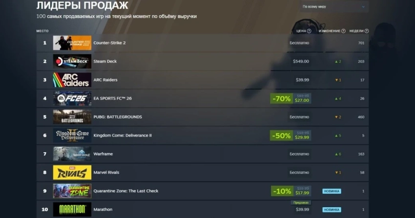 Многие геймеры не спешат праздновать попадание Marathon в местную «главную десятку». И дело тут не только в том, что шутер может скоро её покинуть, но и в том, каким играм он уступает по продажам. А это, к примеру, постапокалиптический симулятор Quarantine Zone: The Last Check, который на днях продался тиражом 300 тыс копий.
