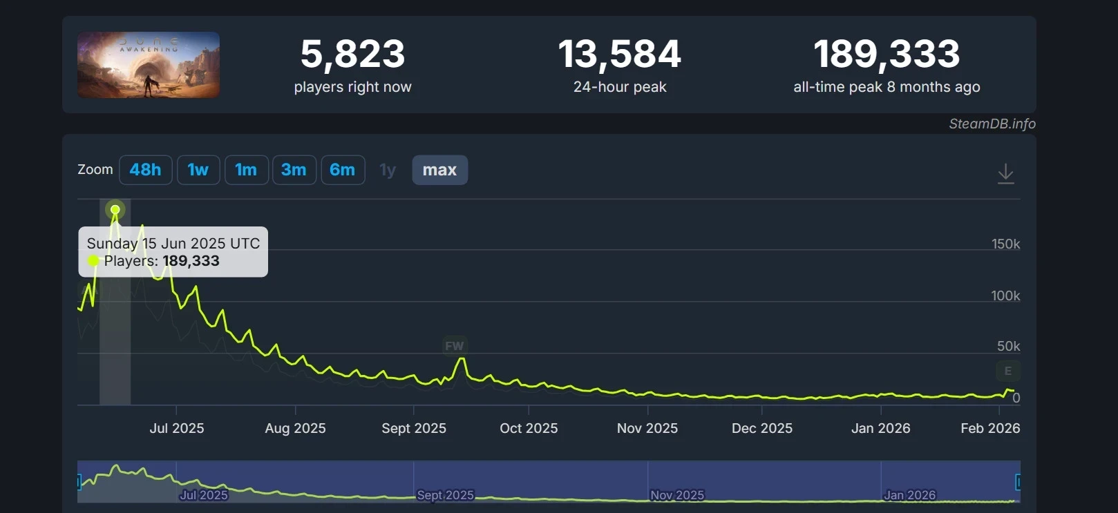 Онлайн Dune: Awakening в Steam. Источник: SteamDB